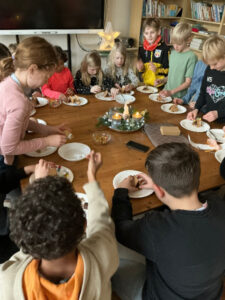 Dort haben wir gesungen und die Weihnachtsgeschichte gehört.
